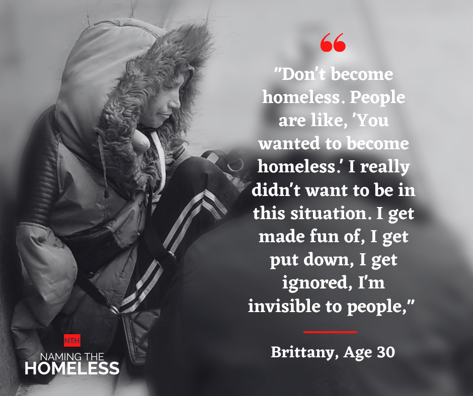 “They looked at me and they told me to go back home,” said Brittany, her voice tight. “If I had a home to go to; I would. I don’t have anybody back home [to go back to] either.”